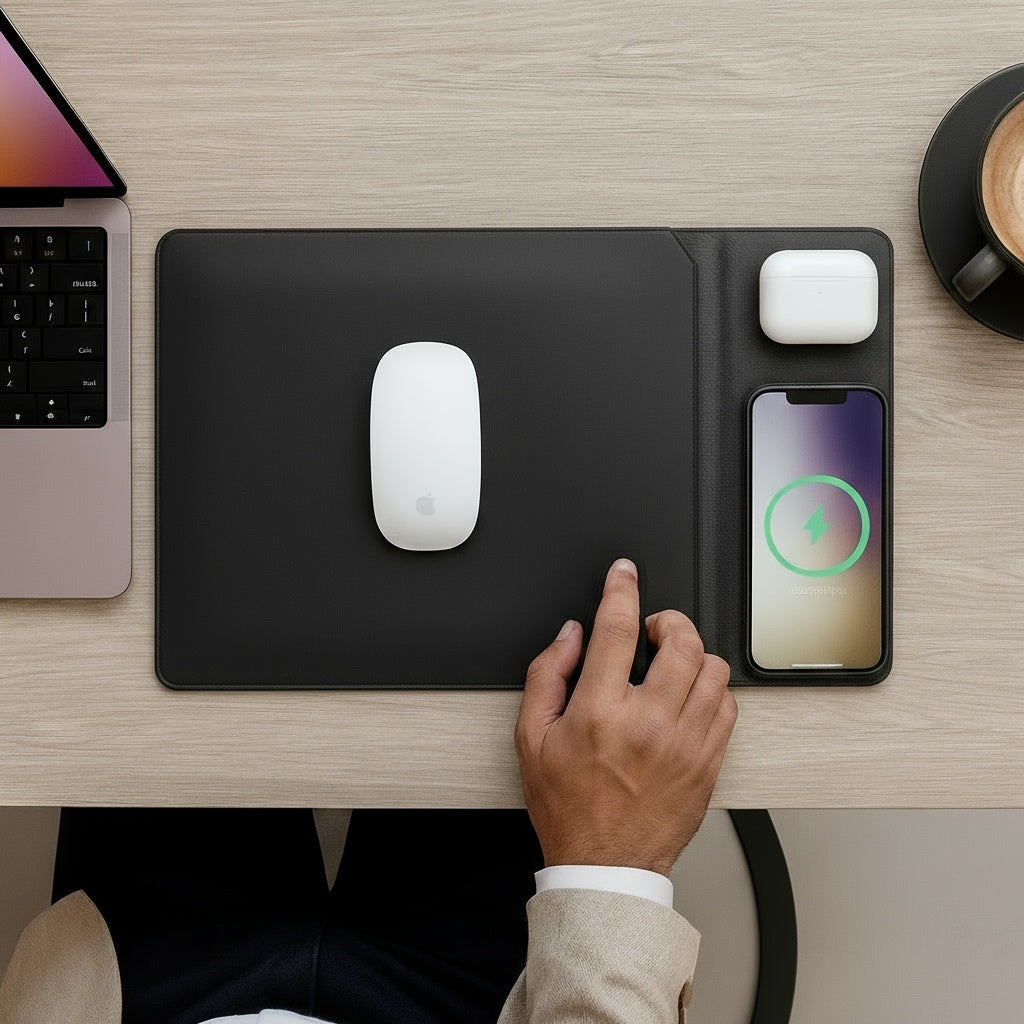Das weiche Innenfutter schmiegt sich perfekt an – elegant, funktional und bis ins kleinste Detail durchdacht. Mit dieser Hülle braucht man keine Powerbank mehr nervig mitzunehmen, denn die Hülle kann auch bis zu zwei Geräte, egal ob Handy oder AirPods, laden.